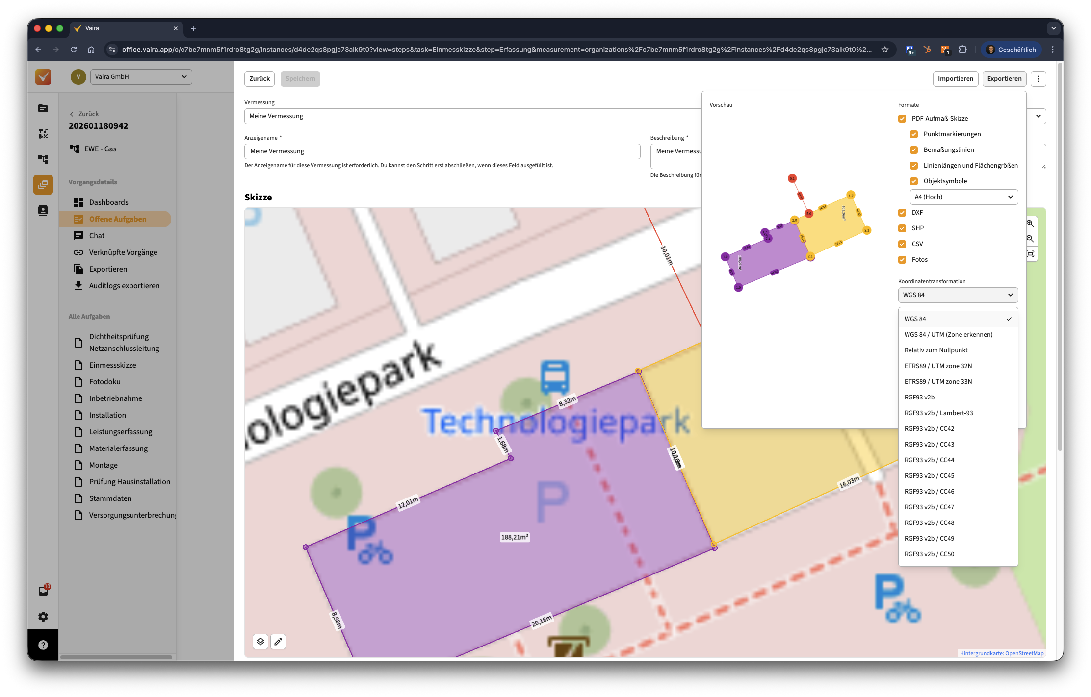 Mehr dazu, wie du deine Vermessung praktisch in deiner Koordinatentransformation exportieren kannst, erfährst du in diesem Artikel: Wie kann ich digitale Skizzen exportieren und die Vorschau des Exports nutzen?
