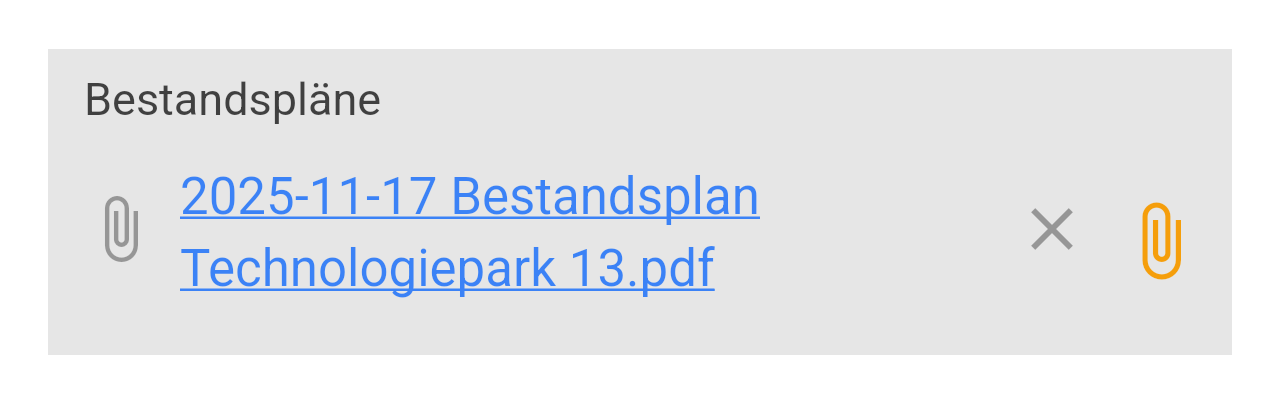 Das Anhang-Feld erlaubt es dir, Dateien von deinem Smartphone zum Vorgang hinzuzufügen. Mit einem Klick auf die Büroklammer öffnet sich dein Smartphone-Speicher. Suche hier die Datei (bspw. eine PDF) heraus, die du anhängen möchtest. Wenn du eine Datei ausgewählt hast, wirst du ihren Namen anschließend in diesem Feld sehen. Damit weißt du, dass die Datei erfolgreich angehängt wurde.