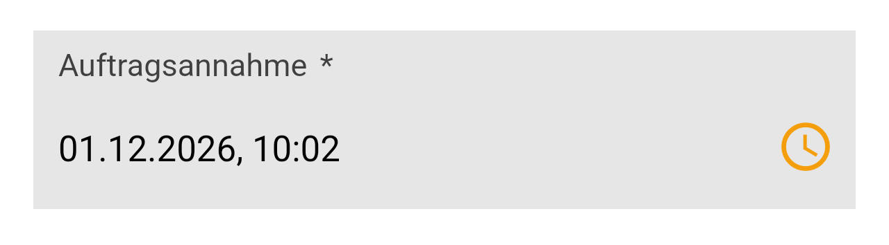 Das Datum-Feld dient der einfachen Auswahl von Datumsangaben. Klicke auf das Kalender-Icon rechts, um ein Popup zu öffnen.