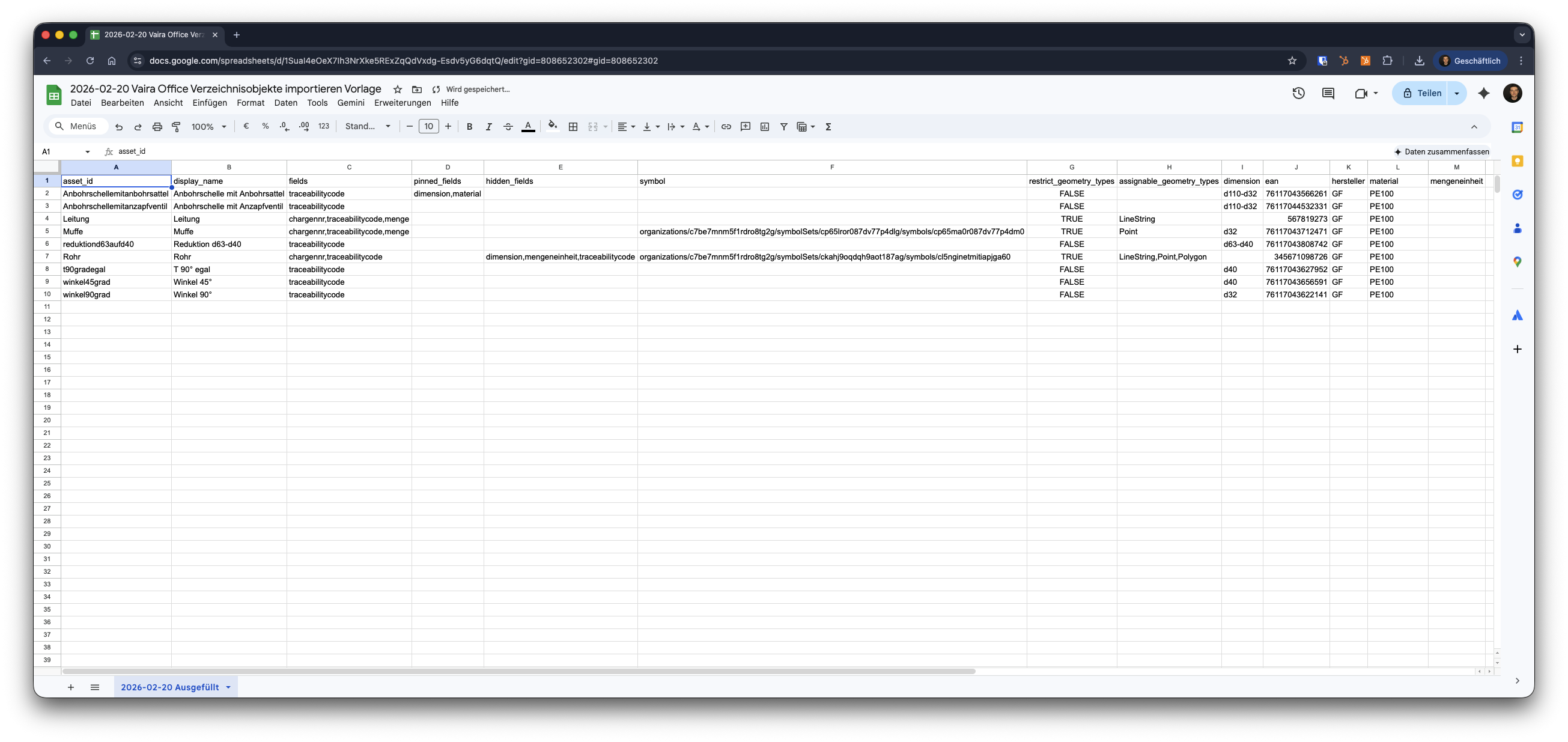Wir raten aber davon ab, dieses Feld auf eigene Faust manuell zu befüllen. Falls du Symbole zu ganz neuen Objekten hinzufügen möchtest, lass dieses Feld besser leer, importier alle Bauteile und nimm die Zuweisung dann manuell im Vaira Office über unsere Zurodnung vor. Wie du das machst, erfährst du hier: Wie weise ich Verzeichnisobjekten (z.B. Bauteilen) ein Symbol aus einem Symboldatensatz zu? - restrict_geometry_types: In diese Spalte kommen nur die beiden Werte TRUE oder FALSE (also WAHR oder FALSCH im Deutschen). Hier legst du fest, ob das Bauteil nur zu bestimmten Messobjekten zugewiesen werden kann – ob zu Punkten, Linien oder Polygonen bzw. Flächenobjekten.