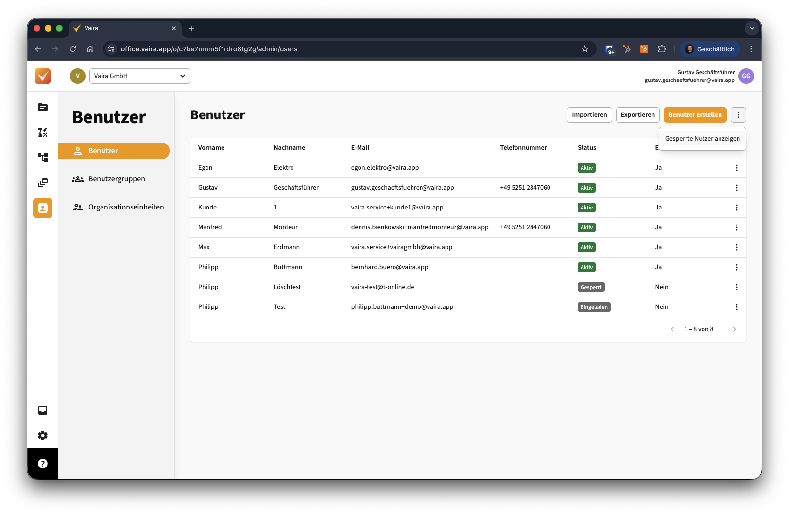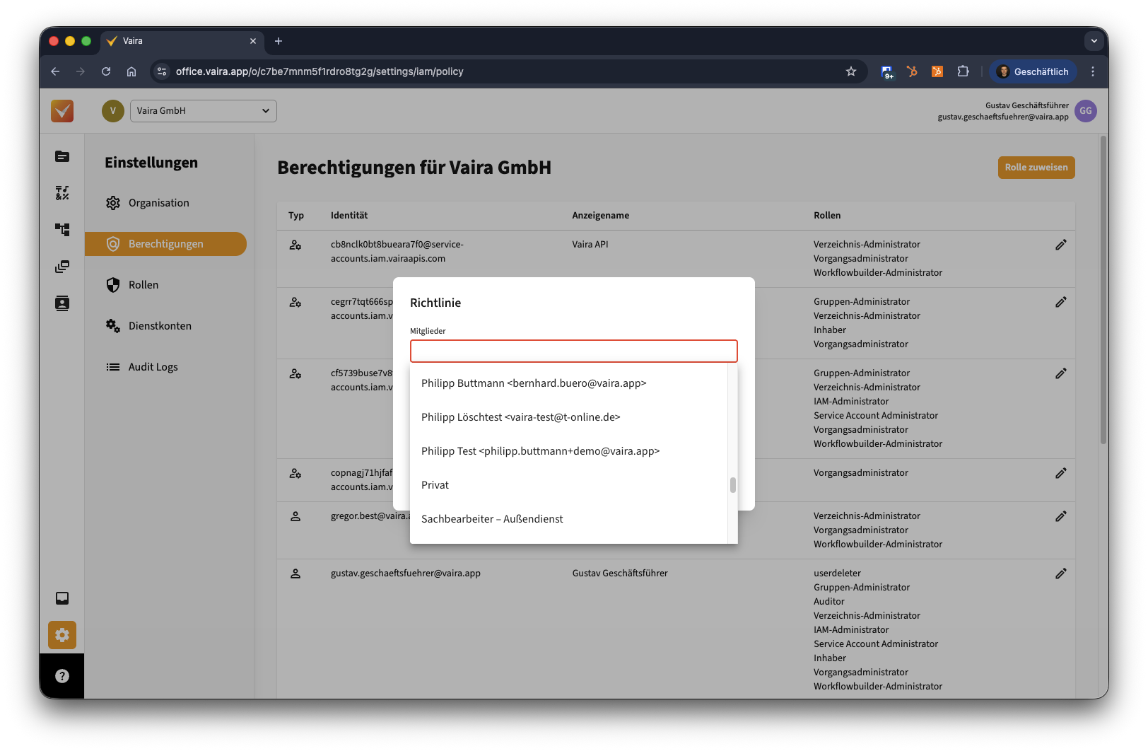 Damit hast du erfolgreich Berechtigungen für deinen Vaira-Account und deine Nutzer, Gruppen und Organisationseinheiten erstellt.