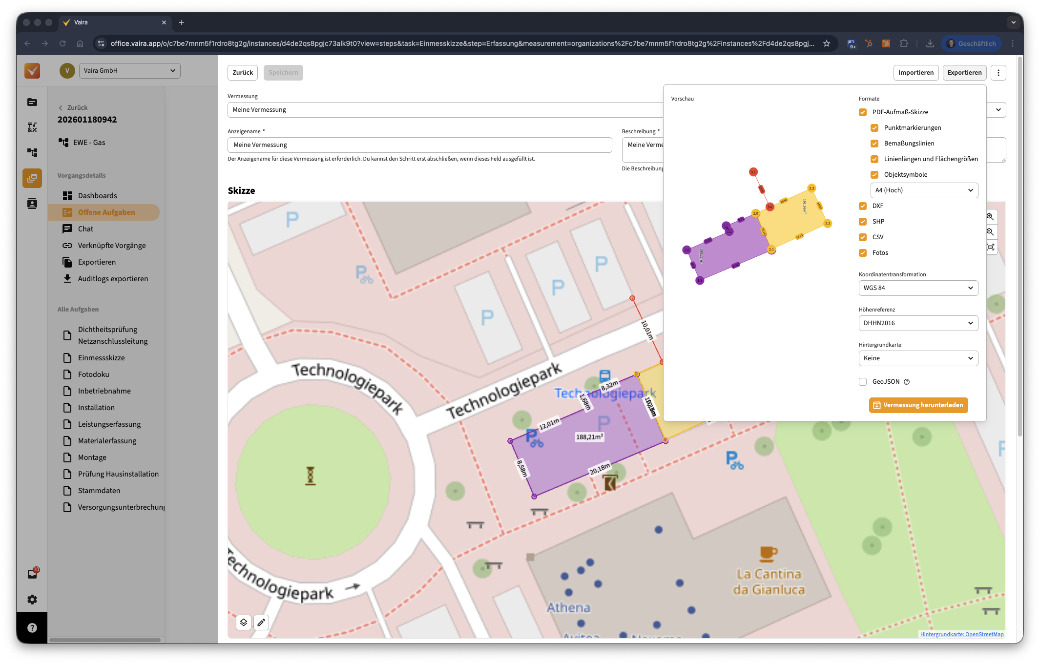 Vermessung aus noch offenem Vorgang exportieren