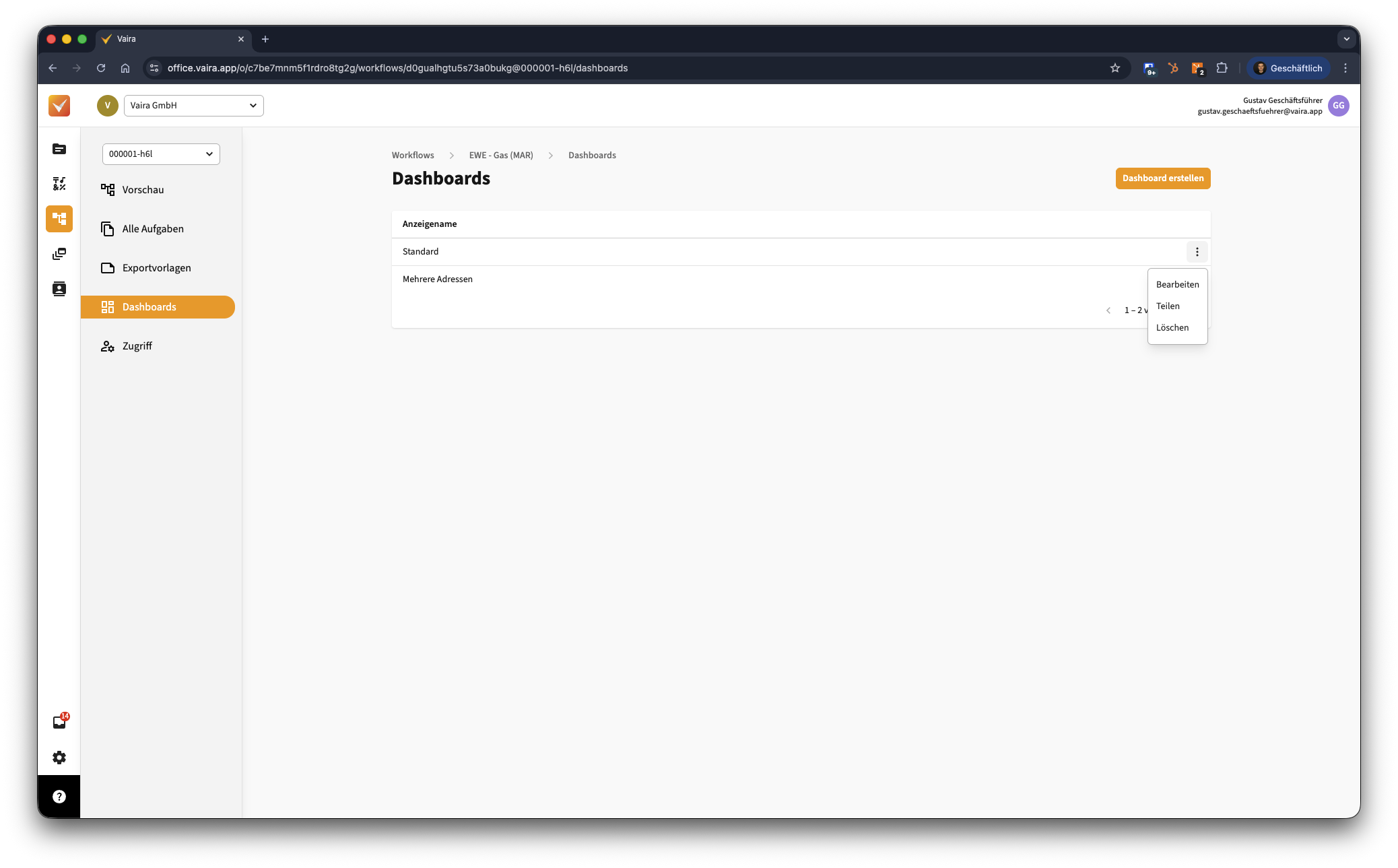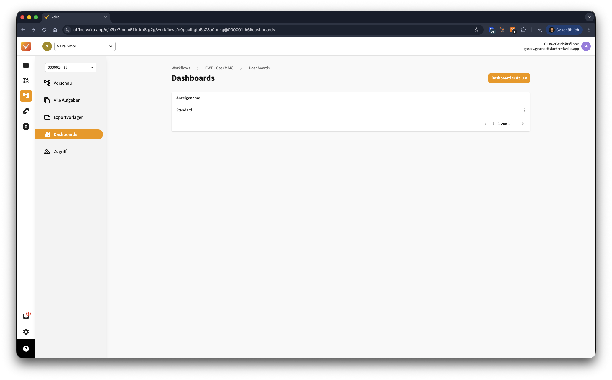 Wie kann ich ein Dashboard für meinen Workflow erstellen?