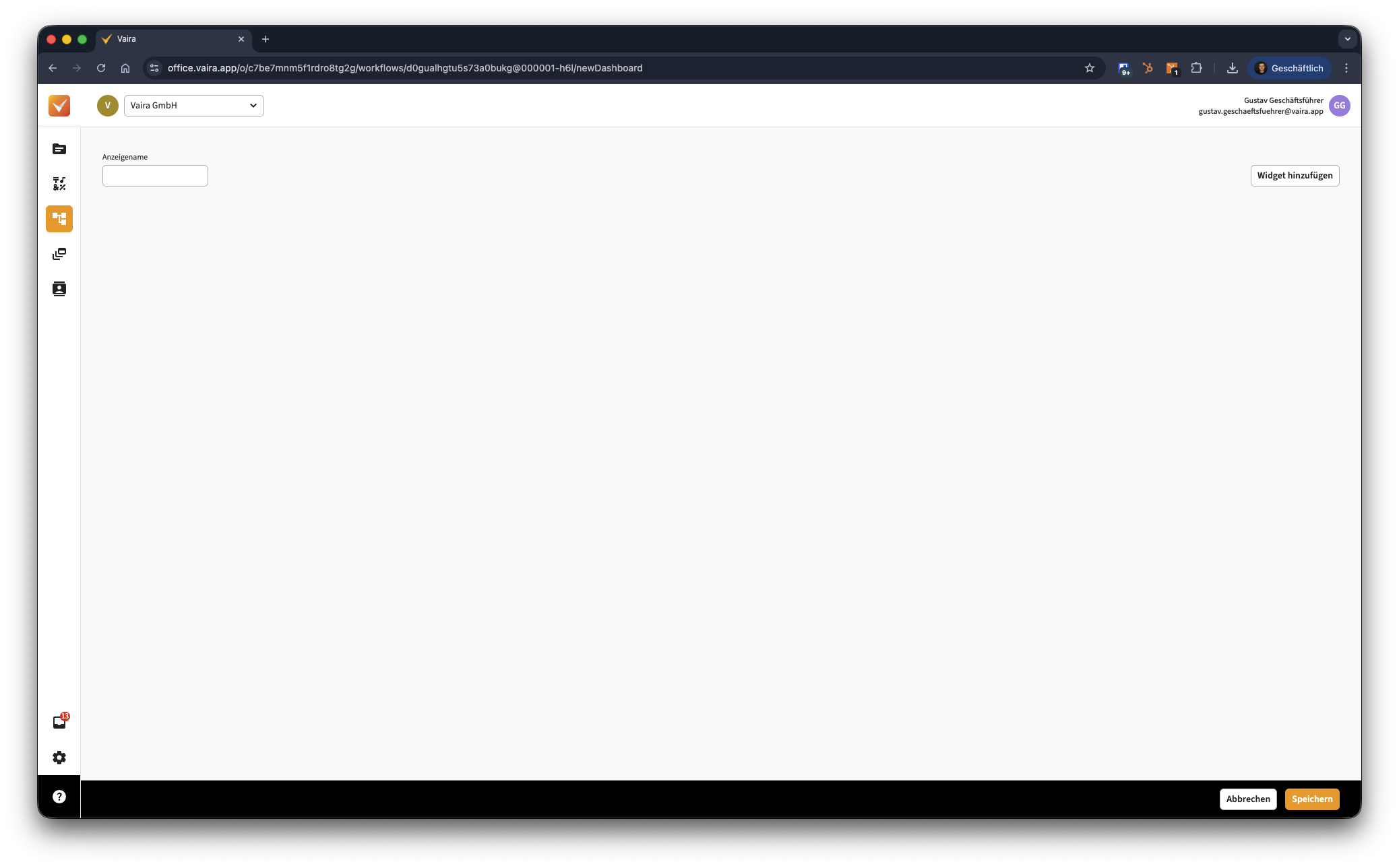 Wähle in der linken Navigationsleiste im Vaira Office Workflows aus.