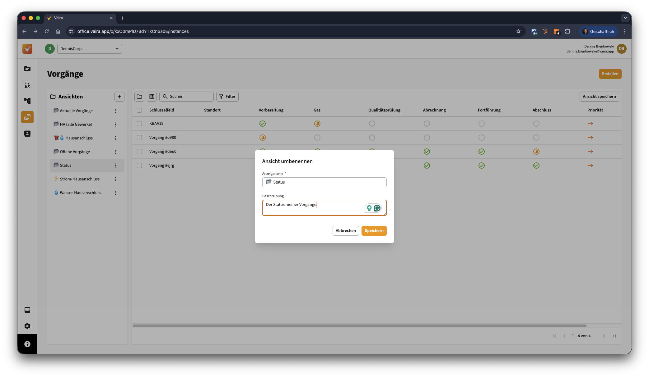- Wenn du mit deiner Tabelle zufrieden bist, denke daran, die Ansicht zu speichern. Klicke dazu oben rechts über deiner Vorgangsliste auf den Button Ansicht speichern.