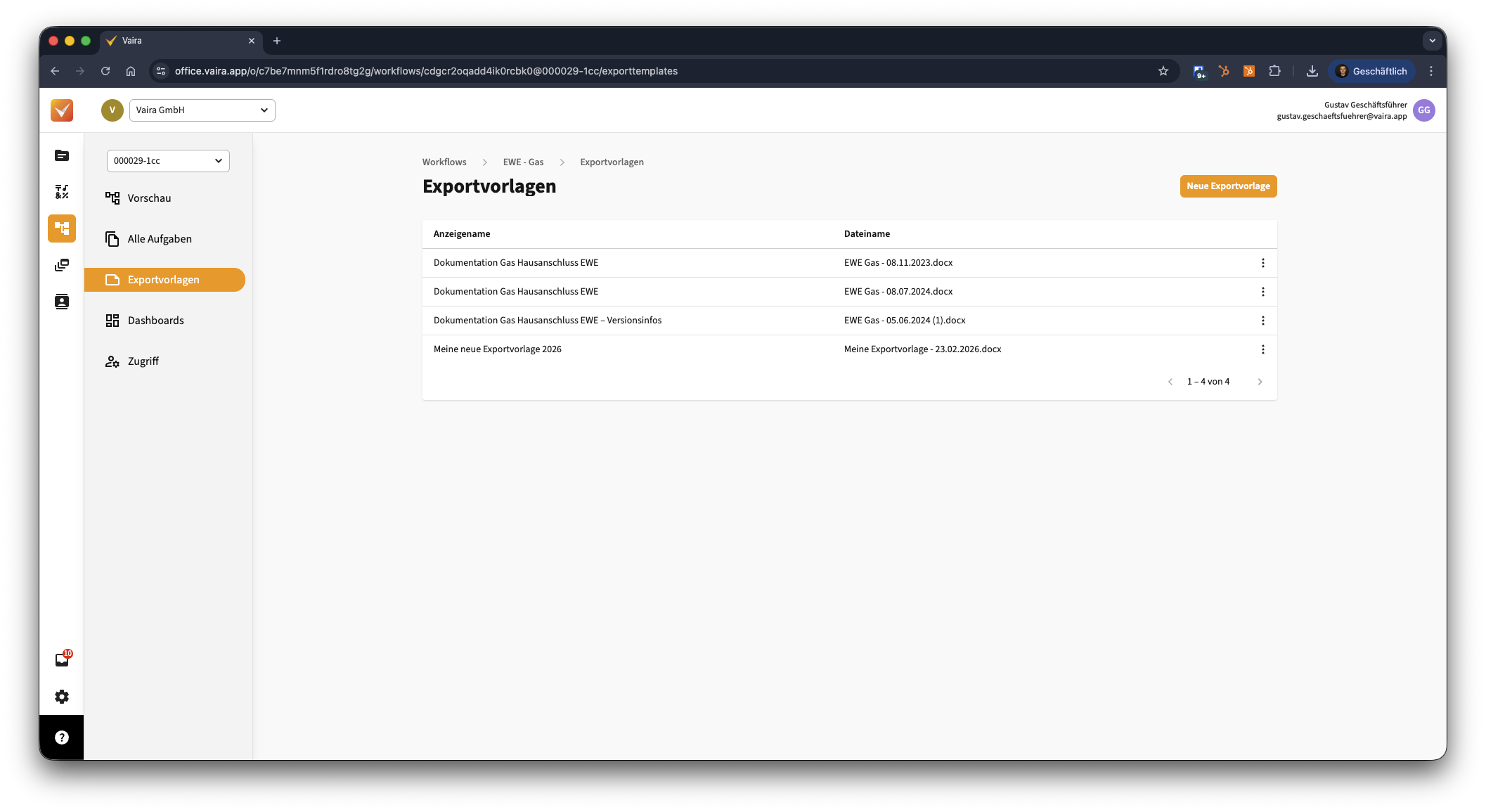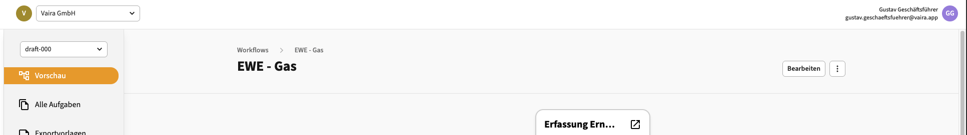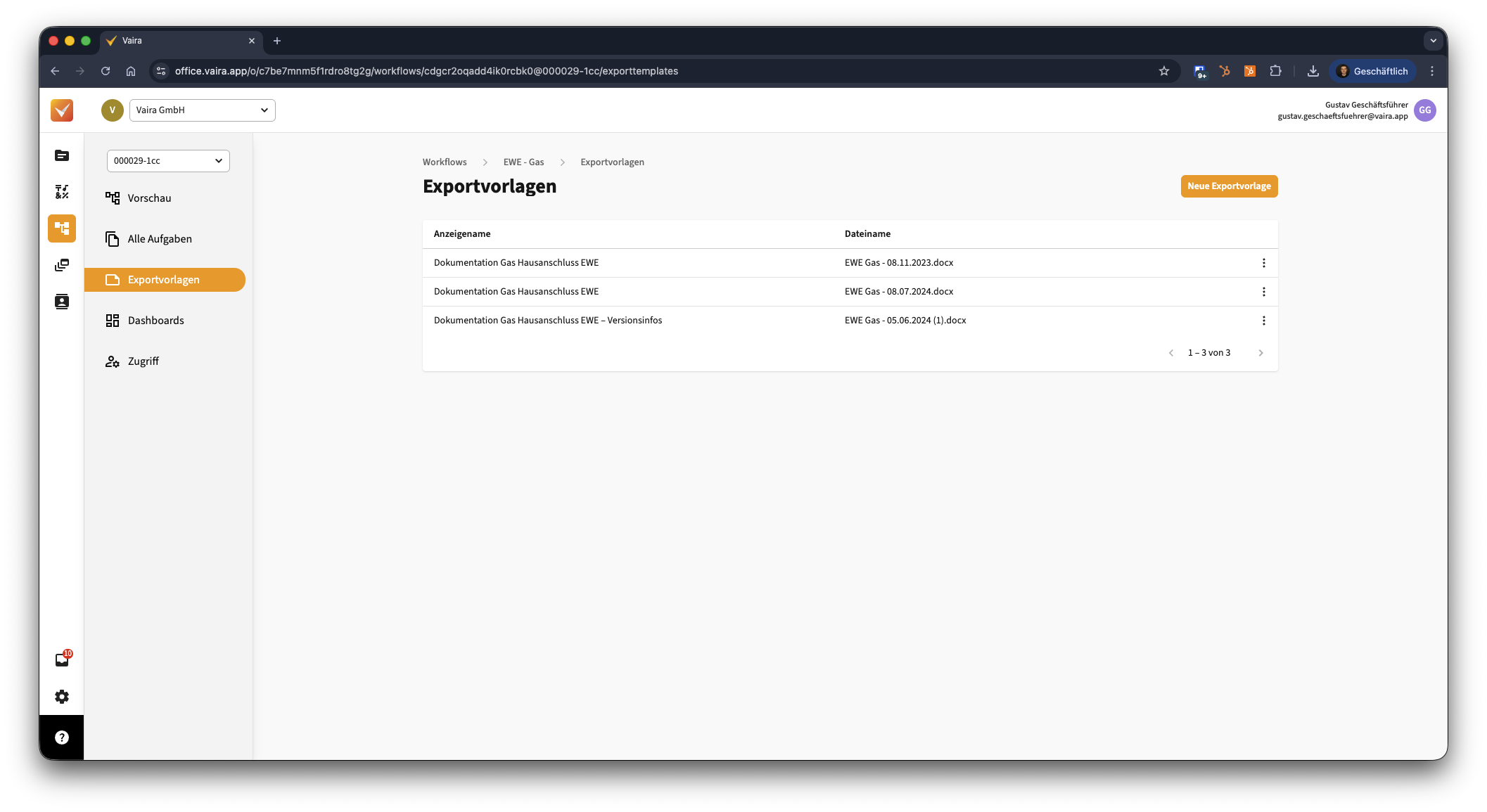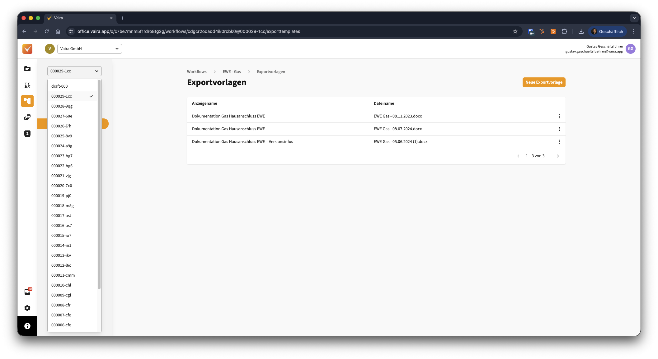 - Navigiere im Vaira Office über das linke Navigationsmenü zu deinen Workflows.