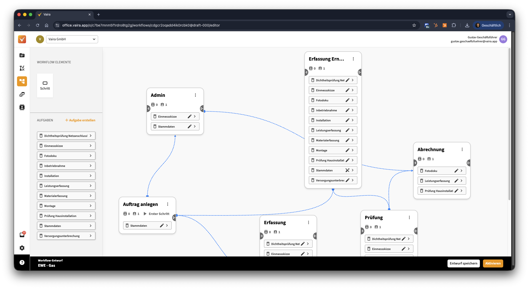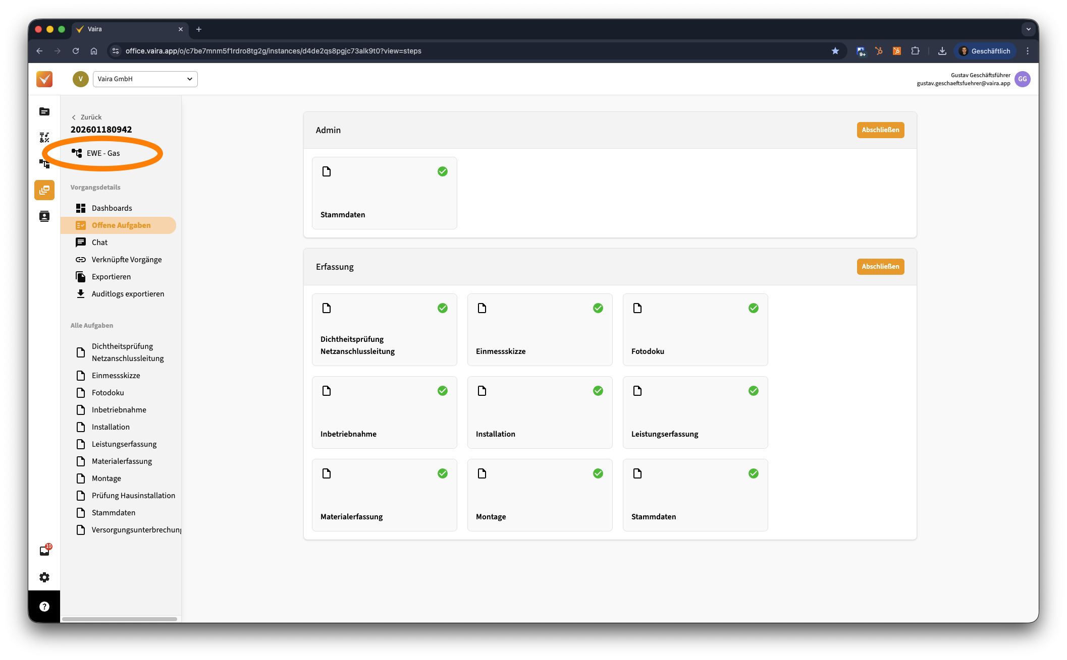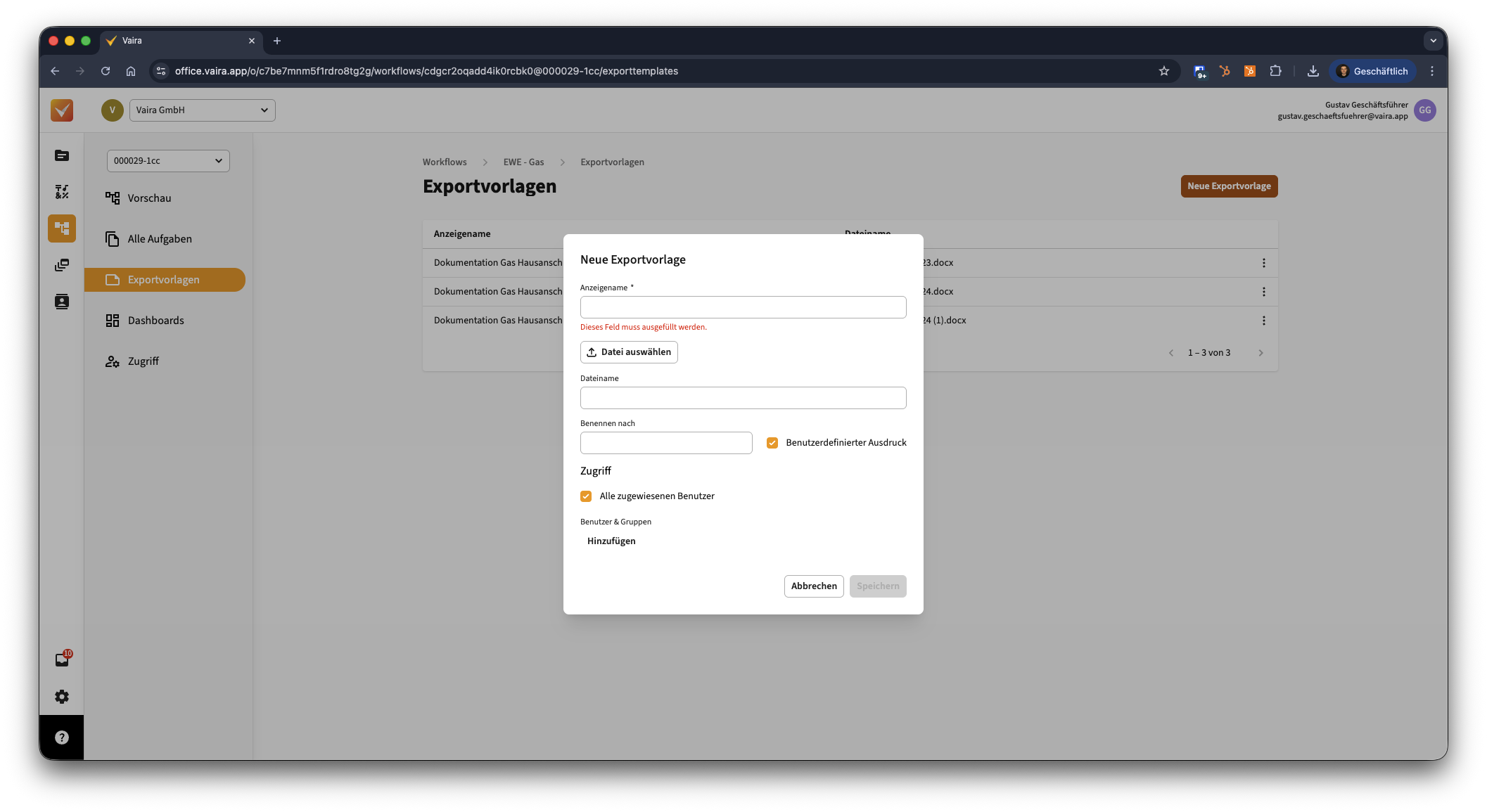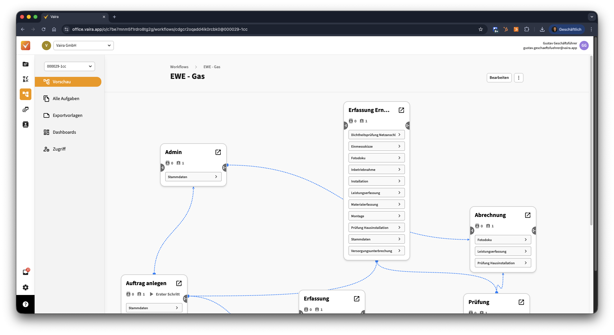 - Navigiere im Vaira Office über das linke Navigationsmenü zu deinen Workflows.