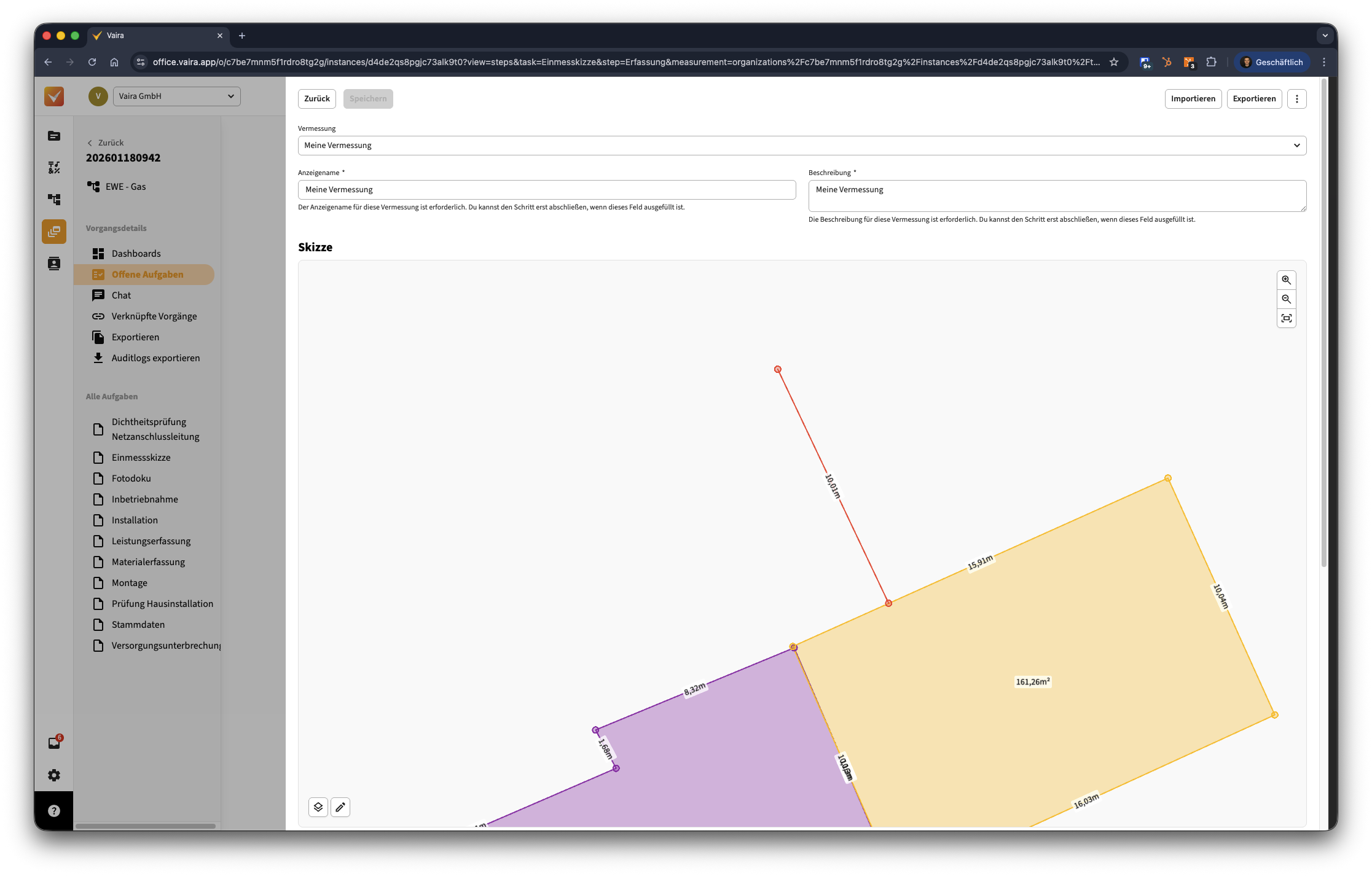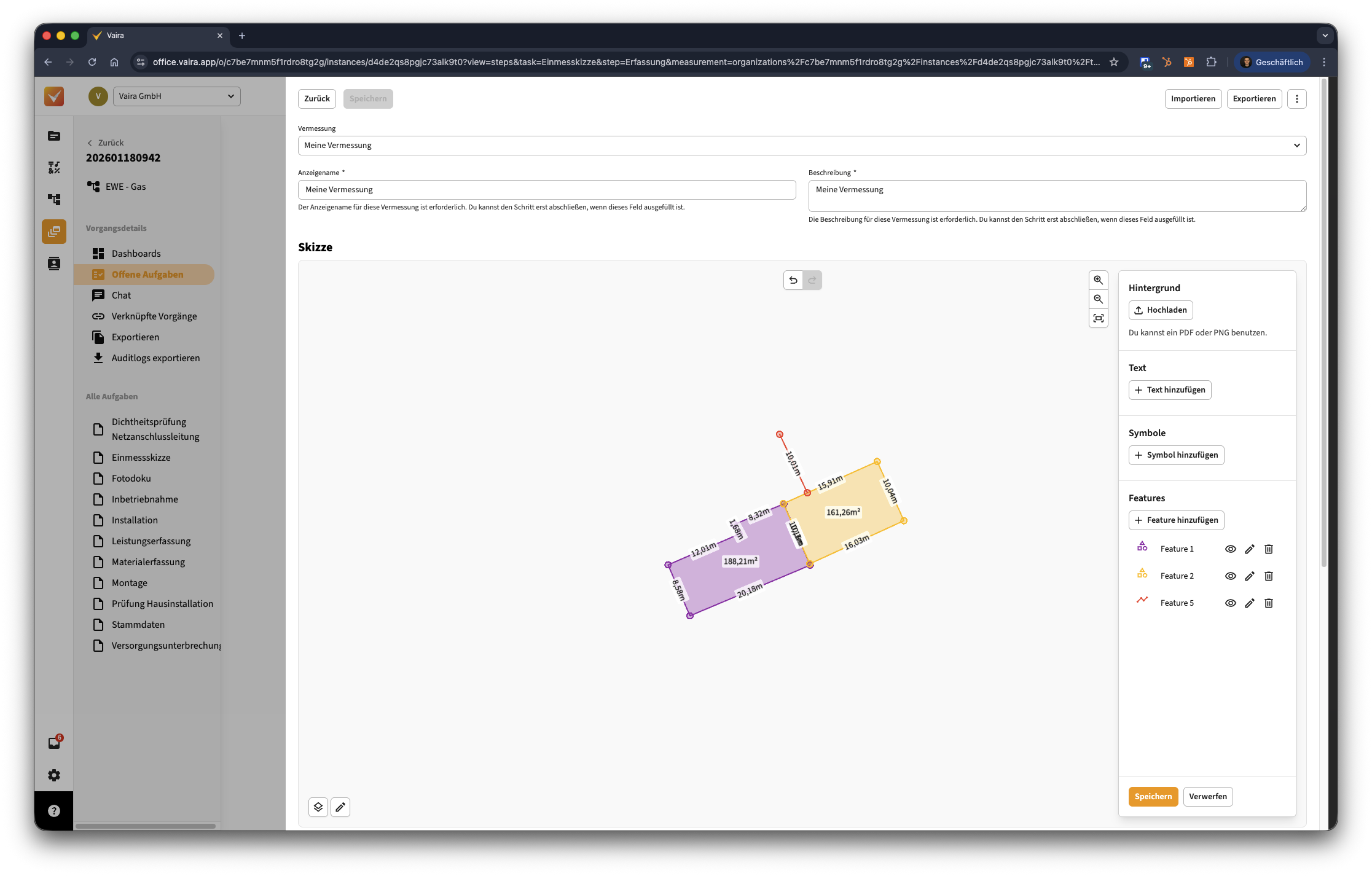 - Klicke im Feld der Vermessungen auf die gewünschte Vermessung und gelange so zu deiner digitalen Skizze.