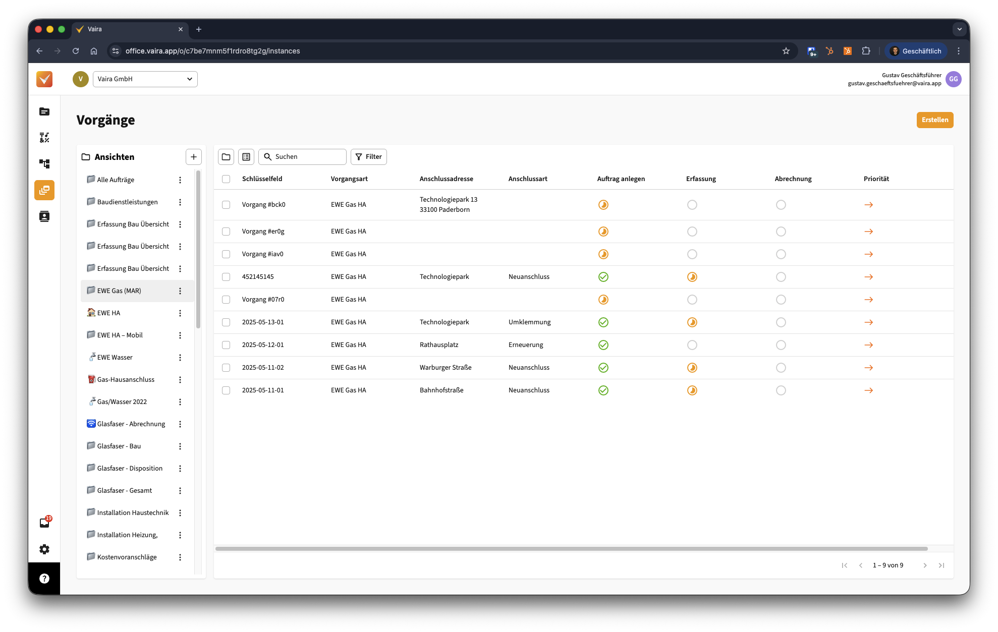 Öffne deine Vorgangsliste über den Vorgänge-Button links in deiner Navigation.
