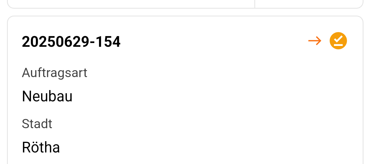 Wenn du auf dieses Symbol tippst, wird der Pfeil zu einem Haken, der Kreis wird orange ausgefüllt und damit ist der Auftrag offline verfügbar.