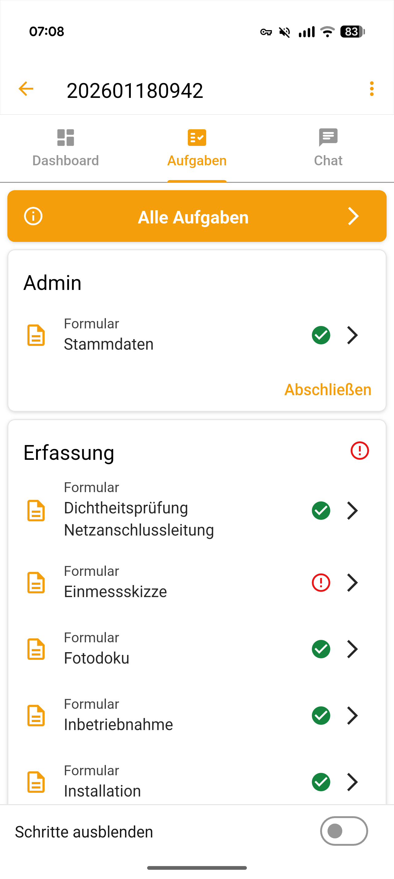 Du kannst auf einen dieser Einträge klicken, um direkt zum Chatfenster des entsprechenden Vorgangs zu gelangen.