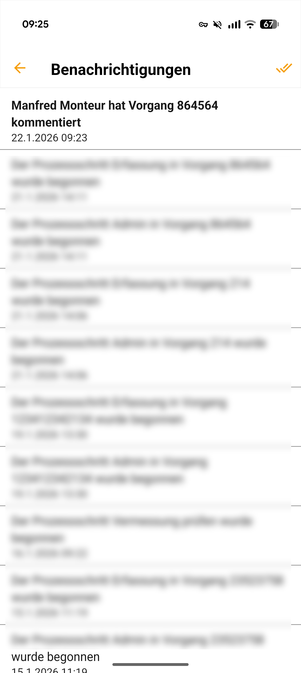 Alle Benachrichtigungen, die das Schlagwort kommentiert enthalten, beziehen sich auf Chatnachrichten in einem deiner Vorgänge.