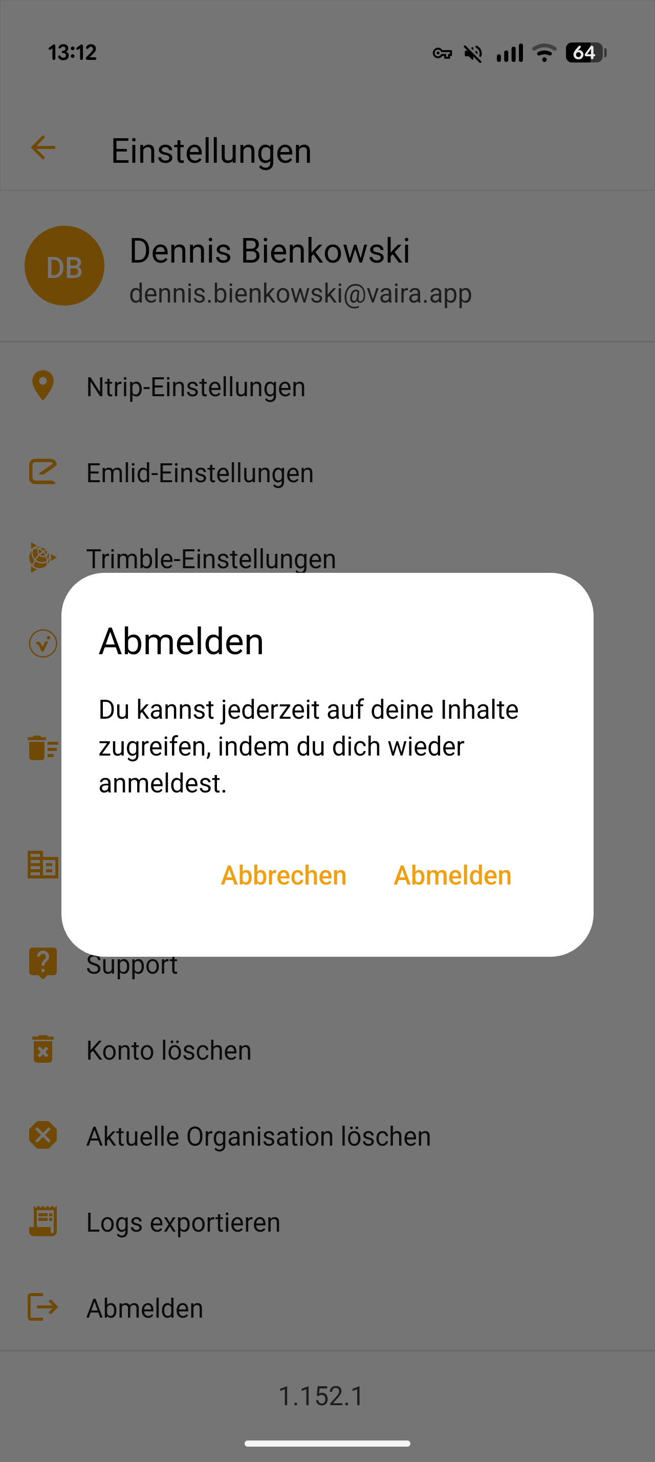 Du kannst dich in deiner Vorgangsliste – also quasi deinem Startbildschirm – aus der Vaira App ausloggen.