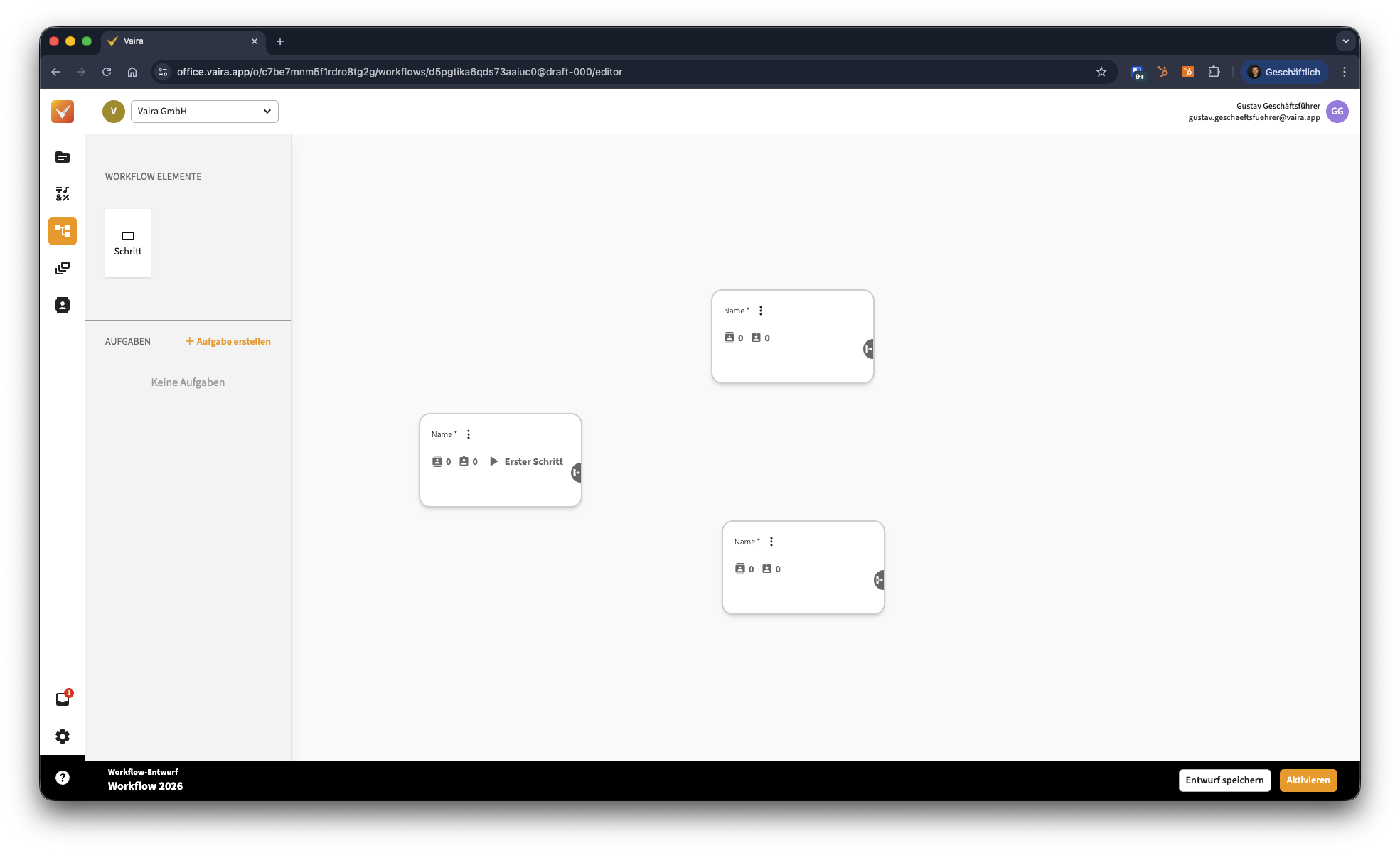 Im nächsten Schritt könntest du nun entweder die Schritte miteinander verbinden oder Aufgaben erstellen, mit denen du deine Schritte ausstattest.